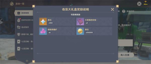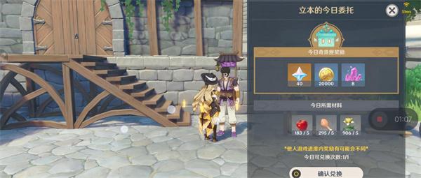 对话后,提交立本要求的材料,就可以兑换每天的奇货匣奖励。这里重点来了,大家先不要急着确认兑换哦。
