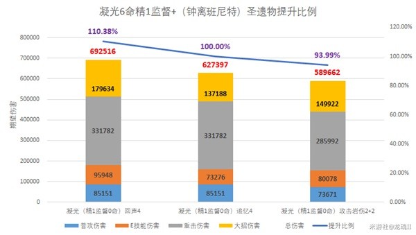 可以看到,回声4对于凝光的提升可以说非常大了。作为一个攻击力为主的岩系角色,凝光之前一直没有太好用的圣遗物,最多是用追忆4,但是也得承受追忆减少能量的负面效果,还好凝光的能量还比较富裕,勉强撑得住,但是大招和E技能的部分都吃不到追忆的加强,严重影响的爆发力。现在有了回声4,凝光的伤害也是得到了大幅度的加强,需要注意的是凝光的璇玑屏重置的时候不要连着放,否则CD12秒不能无缝衔接到回声4的启动条件。