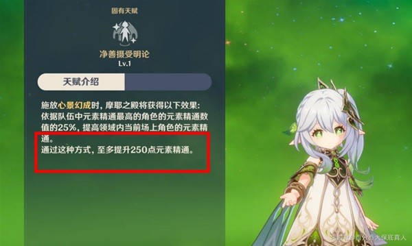 这是小草神的专武,但很少人知道其实它还是一把兼顾辅助能力的装备,全队加40点精通虽然不多,但如果是结合小草神Q技能领域内被动都250点精通加成,就达到了290点。