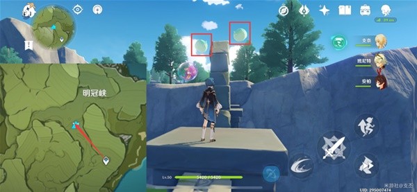 在冷杉树周围,有四只飘浮的风史莱姆,射击它们,获得精致宝箱(2原石)