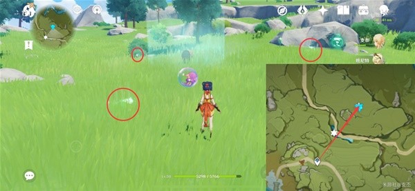 风屏障内有个普通宝箱(2原石),从后面山上飞下来获取