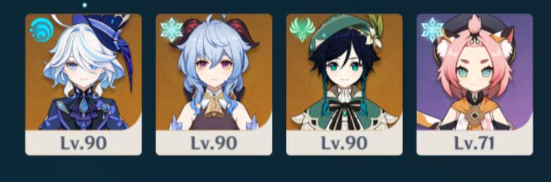 思路:首先推荐使用芙宁娜并放置在第一位并能增伤挂水副c,大招还能进行增伤,其他成员根据实际需求来选择,
