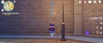 2、抵达图中路灯位置会出现派蒙对话,她说脚印消失了,让我们往上爬。