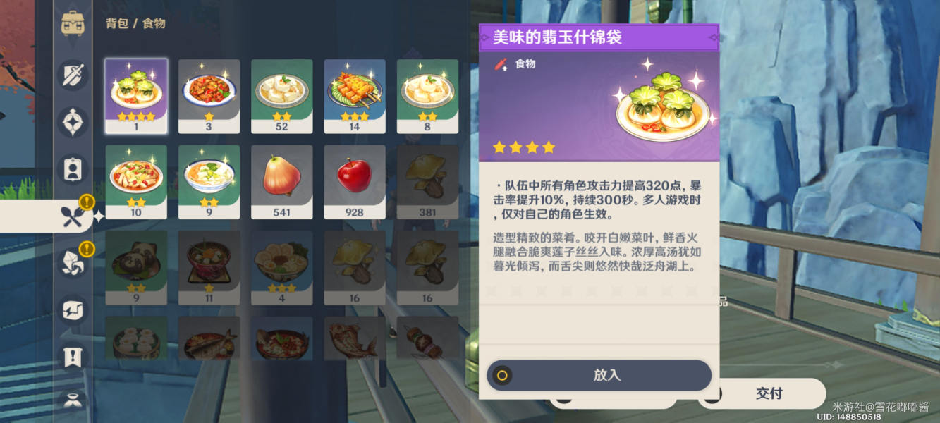 1、交付摩拉肉、翡玉什锦袋等食物类(岩神传说:历史之神)