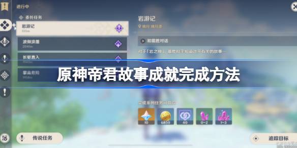 原神岩游记任务有四个故事,其中有个成就是帝君故事,很多玩家不知道怎么做才能完成,下面小编为大家带来原神帝君故事成就完成方法,感兴趣的小伙伴一起了解一下吧。