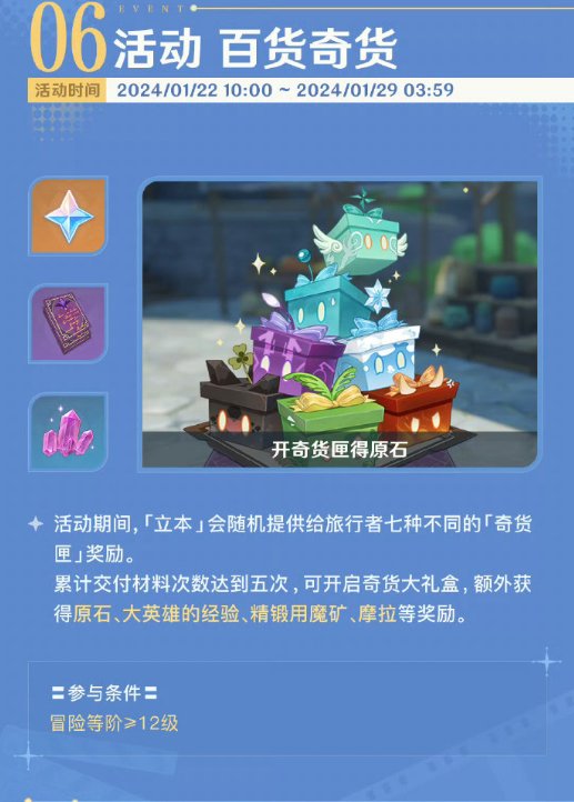 原神4.3立本活动将在2024年1月22日正式开启。