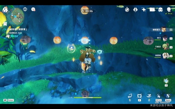 今天的线索挑战有两种类型:一种触碰线索光球后,需要使用炸弹水母的能力,将黄色的果实一次性炸没。瞄准正中间的发射炸弹,随后再次引爆炸弹就可以完成挑战。