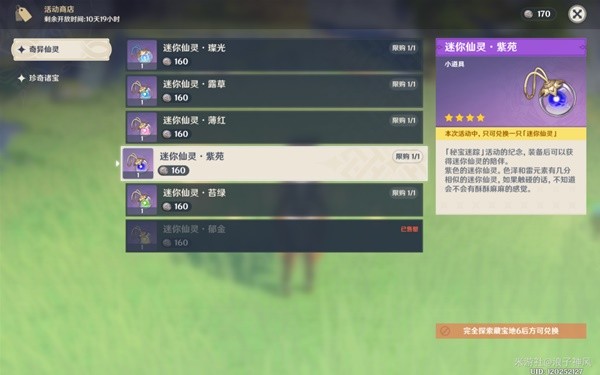 其中迷你仙灵只能兑换一个,需要完成第六天的任务才可以兑换。参加过上次活动的旅行者不能兑换同样的仙灵。