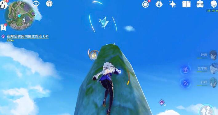 1、需要去到地图最右边的小岛的山上,在最高处触碰光点。