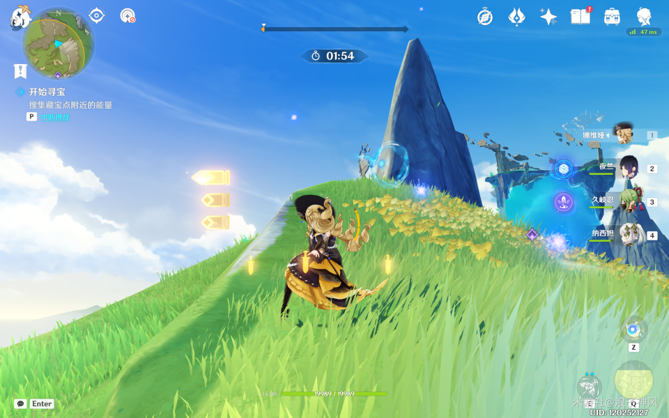 开始第二轮的寻宝活动,流程与第一轮基本一样,搜集完三个线索光球,找到铲子图标,开始挑战。不过挑战任务是搜集能量,根据提示一路获取光球即可,很简单。
