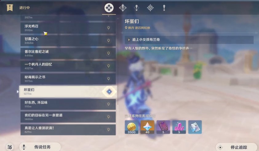 出现任务界面后随即追踪一个任务来到大地图,然后关掉全部界面
