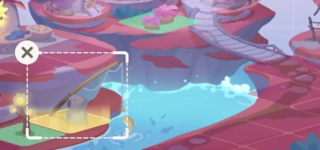 2、将鱼竿放在左下角的水边。