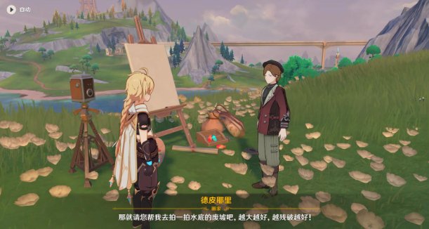 3、对话之后知道【拍水底废墟】。