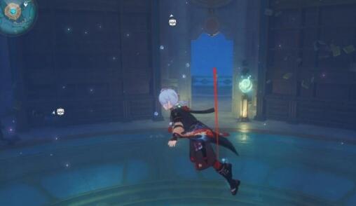 1、游泳前往水下锚点,并抵达指定的位置,进入塔内。