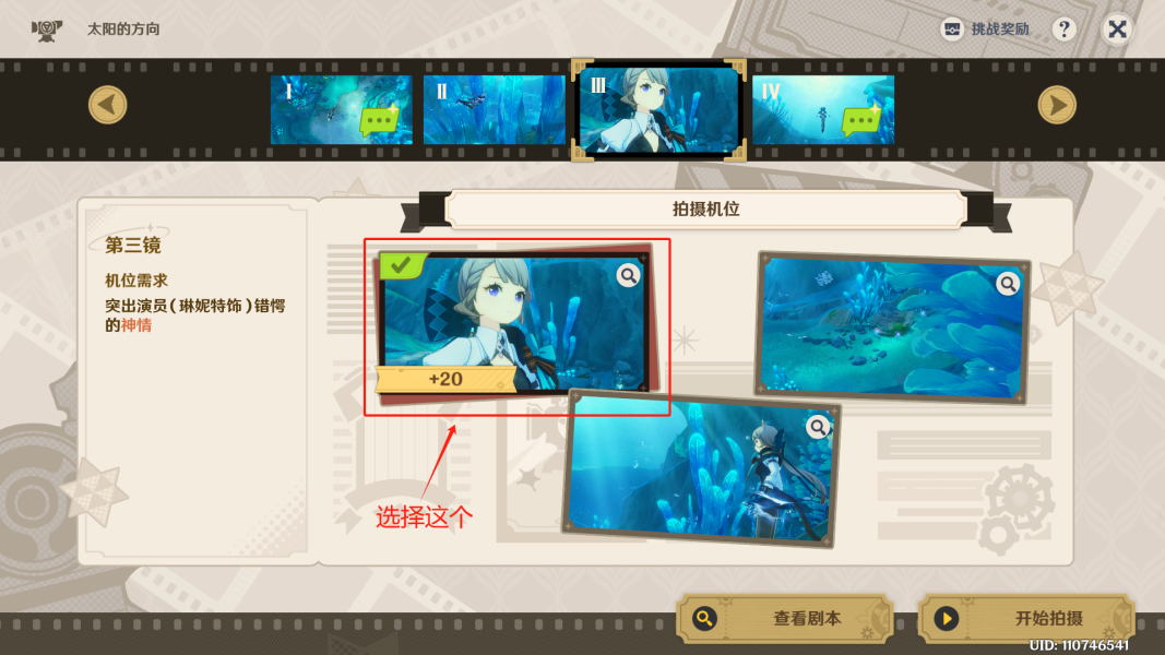 ◇ 第一镜拍摄机位:选择最右边的图片。