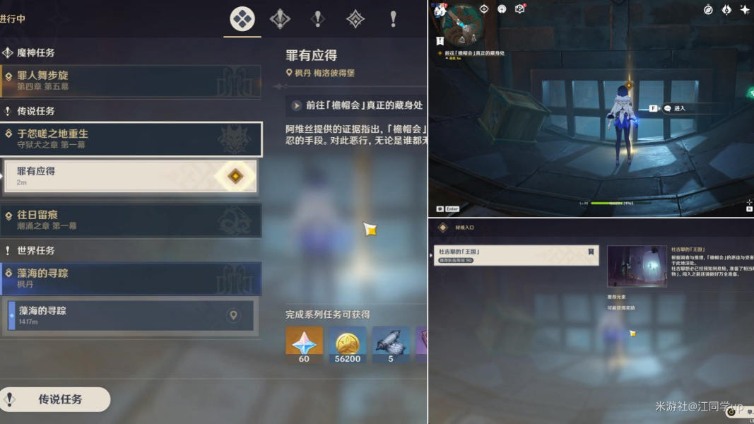 (4)后面在做到【罪有应得】阶段时,需要【前往「檐帽会」真正的藏身处】,就是需要进入【杜吉耶的王国】副本