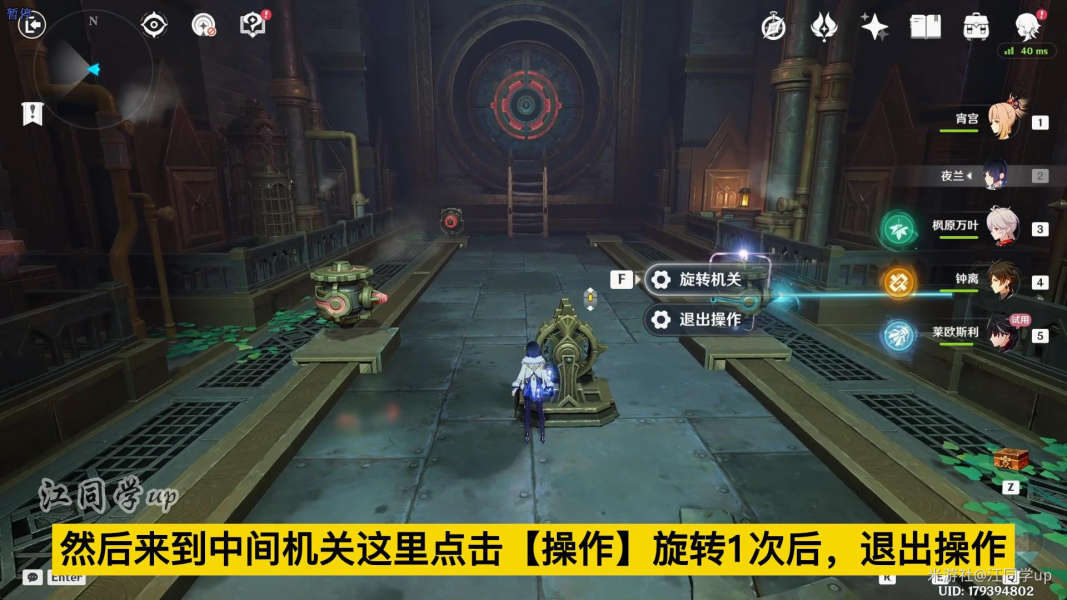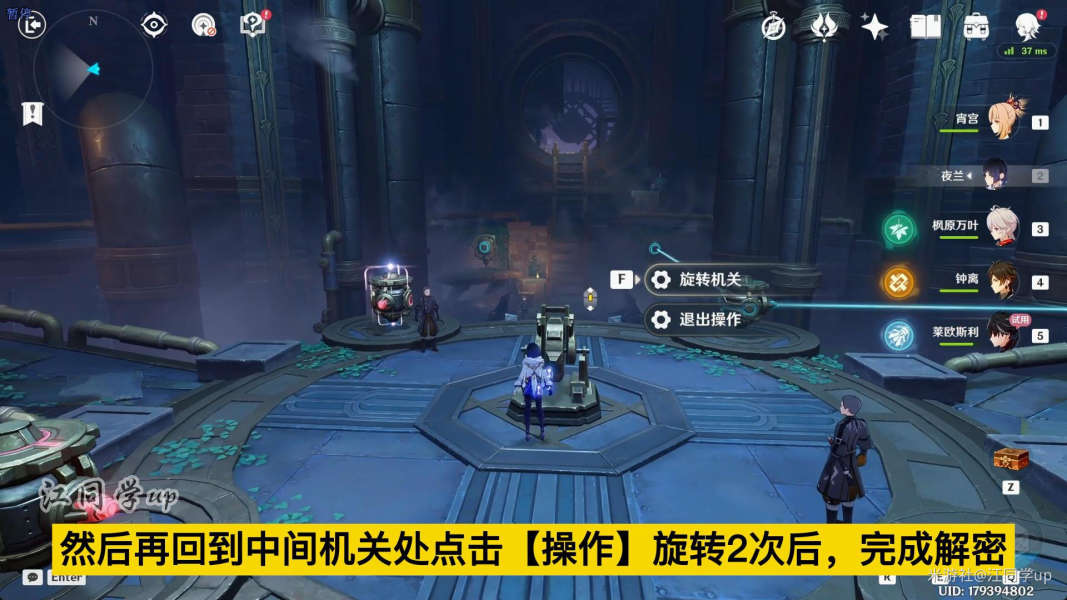 (12)第4处解密,先来到中间机关处点击【操作】旋转2次后,退出操作