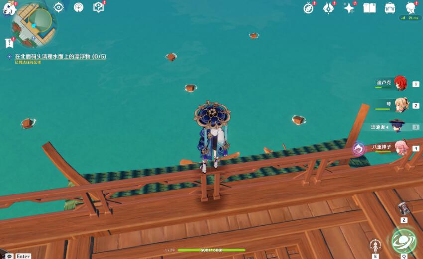 1、在北面码头清理水上的漂浮物(0/5):