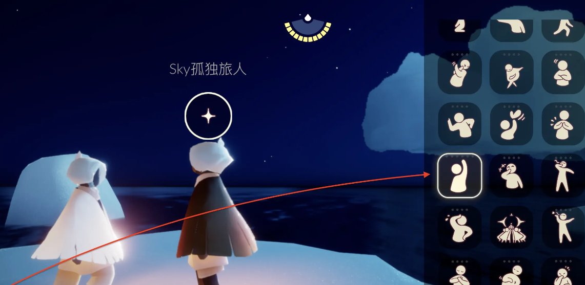 点击屏幕上方中间动 找到招手动作 面对好友 点击并完成招手即可