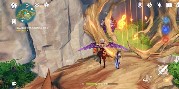 (2)然后我们直接传送到破破岛上方的传送锚点,然后我们飞到半山腰,可以看到一个被关的愚人众,我们过去进行对话。