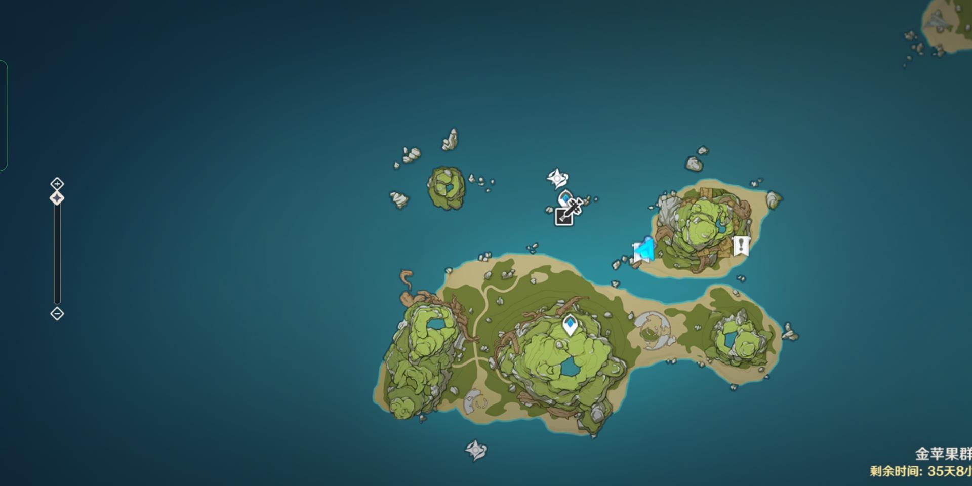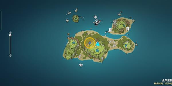 (4)然后我们的任务就已经变了,要去寻找另一个小队成员的线索。我们打开我们的地图传送到布丁岛山上的传送锚点。前往我标记的“任务点”,如果你没有获取徽记的话,海边会有一个光点。我们捡起这个徽记。