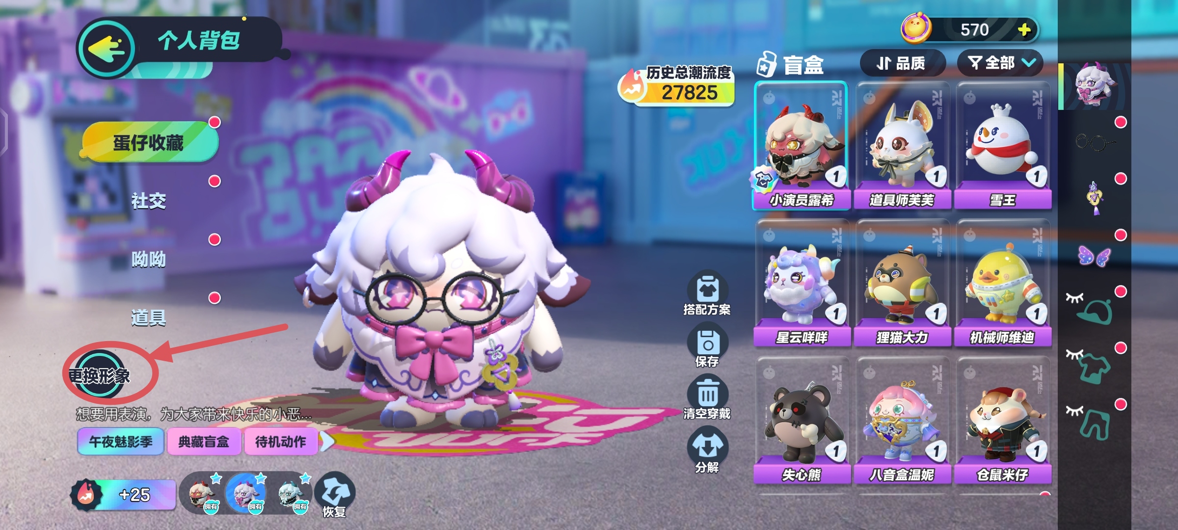 在背包换装界面,点击更换形象