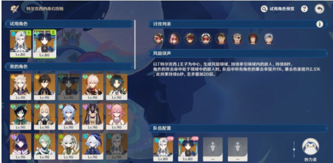 那维莱特(试用)、流浪者(试用),或者满编四人触发元素共鸣