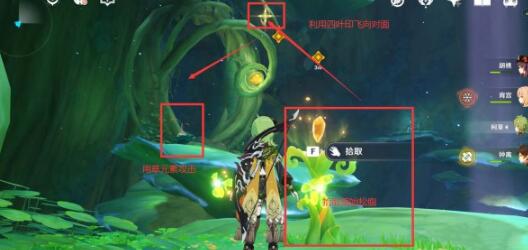 5、继续按照图中指示完成任务,最后使用火元素击败阻碍获取原始松脂。