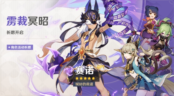 活动期间,限定5星角色「缄秘的裁遣·赛诺(雷)」的祈愿获取概率将大幅提升!