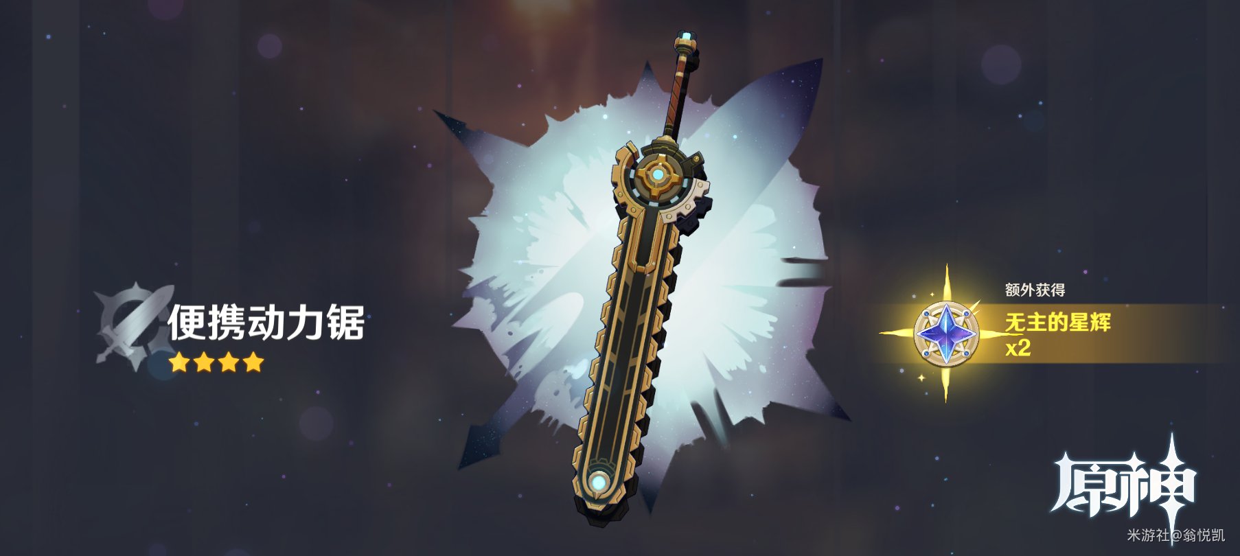 原神有很多武器可以获取,有限时获取与活动获取等,其中的便携动力锯是一把四星双手剑,下面为大家带来的具体内容,感兴趣的玩家们千万不要错过哦!