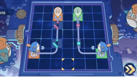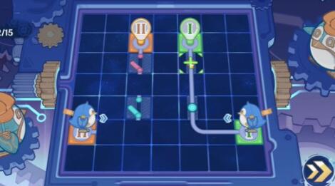 2、在连接时需要将企鹅面前第二格的线路向上弯曲。