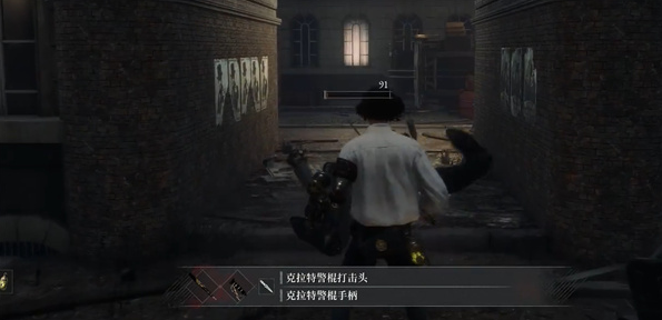3、打败从对面巷子里出来的小怪,他会掉落我们需要的警棍。