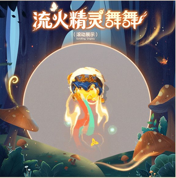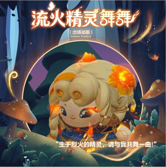 跃动的火光在空中绽放出美丽焰火,流火精灵舞舞于火焰中登场