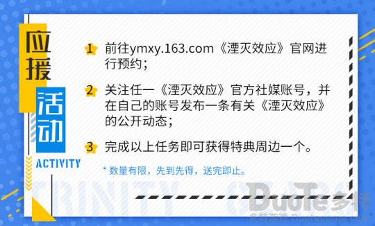 此外,各位道场玩家也可以参与应援活动,获取精美周边。前往官网预约,关注任一官方社媒账号,并发布一条相关动态,即可获得特典周边一个。