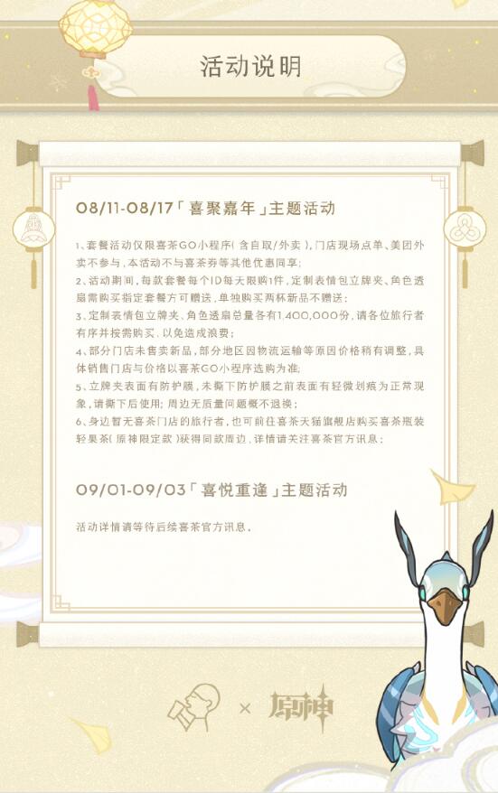 后续更多喜茶×原神联动信息,请持续关注阿喜官方账号,我们8月11日不见不散~