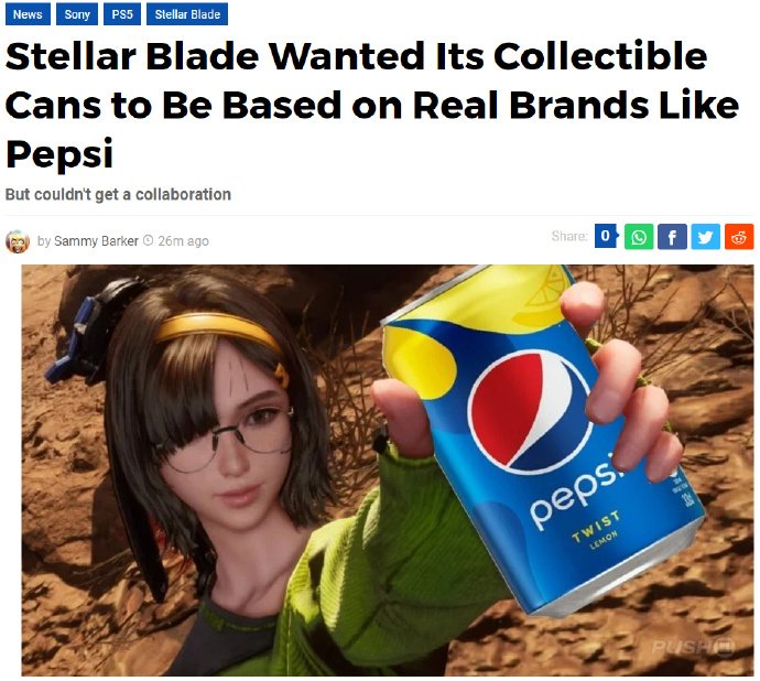众所周知啊,《星刃》的主角伊芙在捡到罐装饮料时,都会摆出相当独特的姿势。而近期有玩家发现,游戏里所有的饮料品牌都是虚构的,看不到那些经典品牌的影子。对此,制作人金亨泰在接受采访时表示,在《星刃》发售之前,没有饮料品牌愿意与Shift Up合作,所以只能专门聘请一位易拉罐设计师,由他来设计出那些看起来很真实的品牌外观。此外,他还补充道:“Shift Up依旧希望能和现实品牌合作,我们对百事可乐非常感兴趣。”不知道以后会不会有联动呢?让我们拭目以待吧!