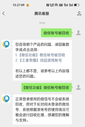 对此,腾讯客服表示:“正常登录使用的微信号不会被系统回收,但对于长时间未登录的微信号,系统根据该账号的使用情况可能会进行回收处理,感谢您的理解与支持”。