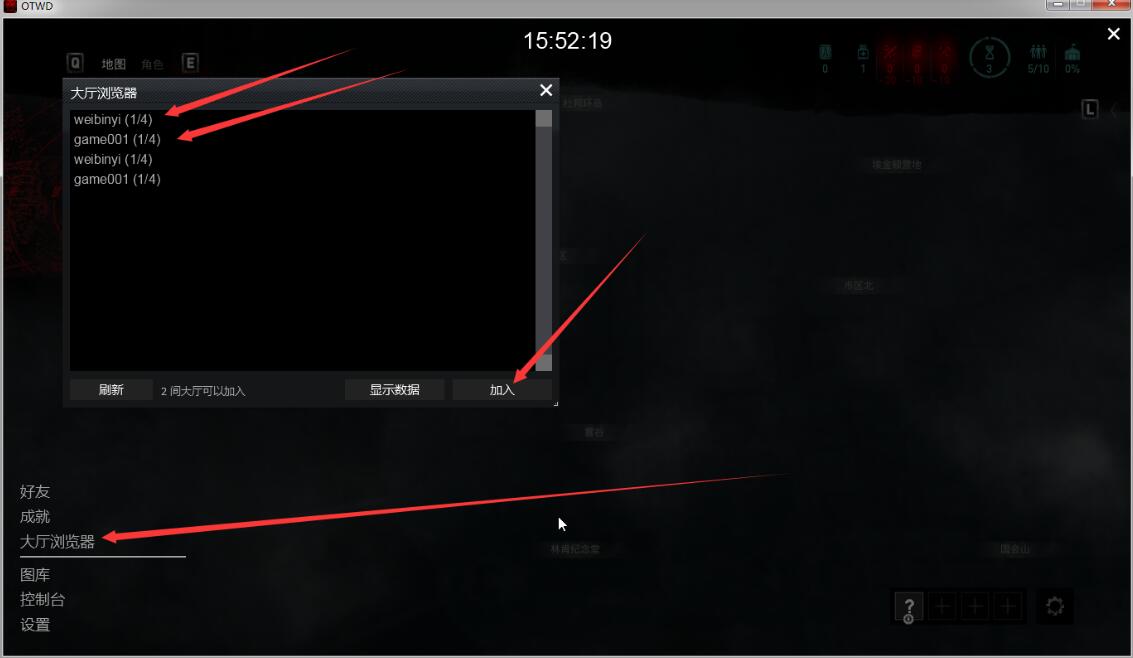 1:通过游侠对战平台《超杀:行尸走肉》房间进入游戏。