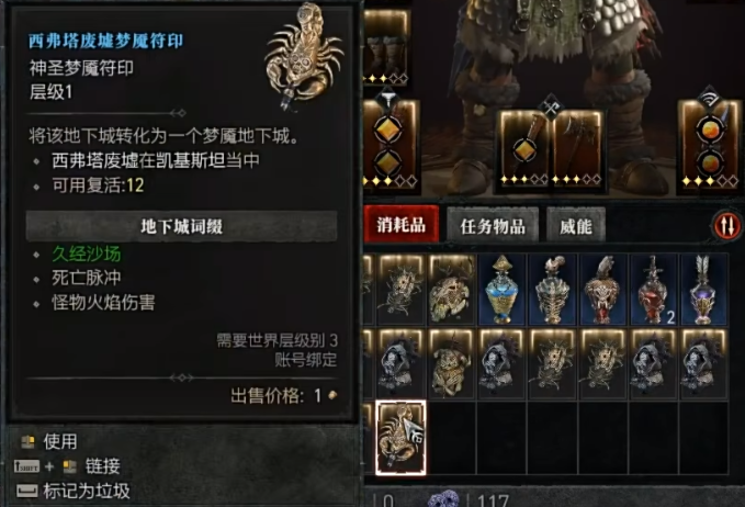 PS:需要先通关一次3级的梦魇地下城才能解锁制作符印功能,解锁前可以先通过刷普通地下城来获得符印。