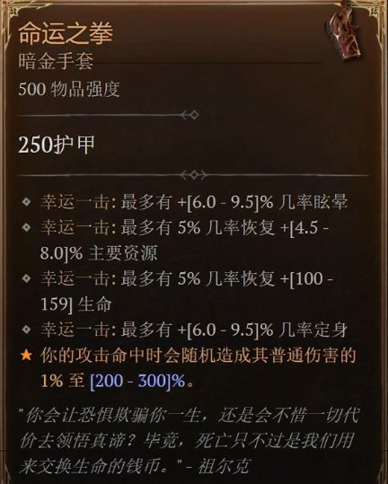 暗黑破坏神4中有这样一件装备,他的效果是围绕着幸运一击来的,那么这个装备怎么样呢,下面跟着小编一起来看看暗黑破坏神4命运之拳装备评价吧。