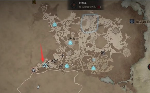 2、然后传送到破碎群峰区域,基奥瓦沙左下角这个传送阵。