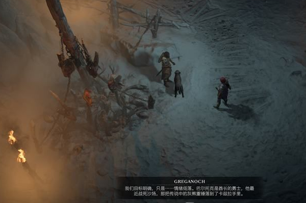 和巨熊部族避难所的熊族战士交谈,他表示勇士巴尔托克战死沙场,传奇的灰熊重锤也落入卡兹拉之手,他请英雄帮忙拿回这件武器。