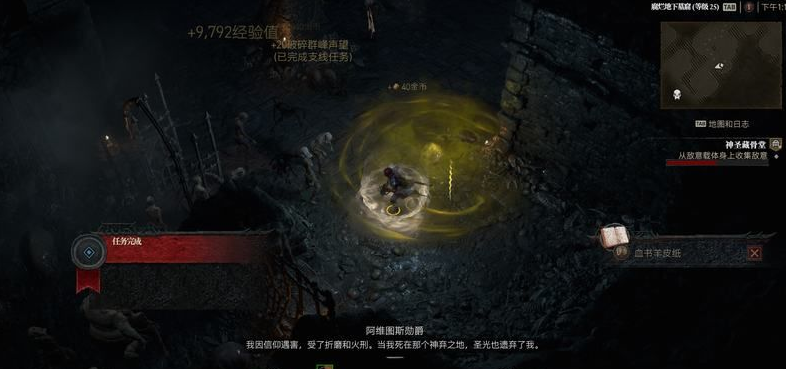 这个任务在神圣藏骨堂地城完成。