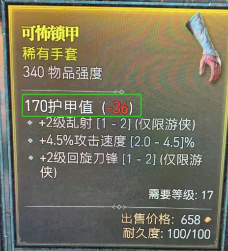 所有防具(头盔、胸甲、手套、裤子、靴子)固定词缀:【护甲】属性