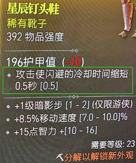 攻击使闪避的cd缩短0.5秒(攻速快的话,多打几次闪避很快就又可以用了,注意暗黑4里的攻击就是指释放对敌人造成伤害的技能)