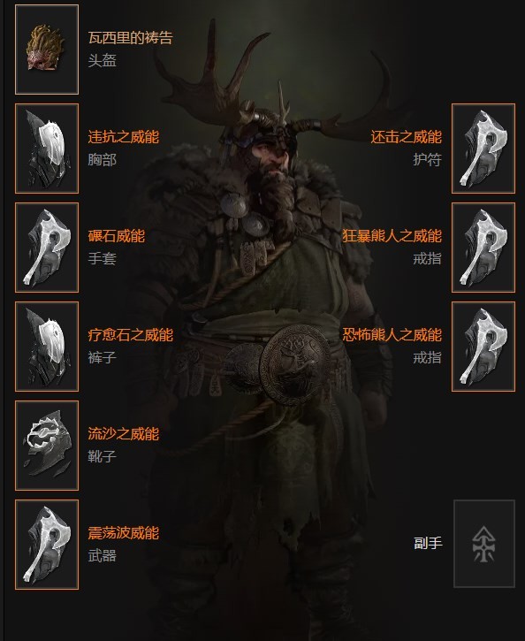没有暗金头前主动技能换凶暴重殴头带+2大地技能威能——弹道威能。
