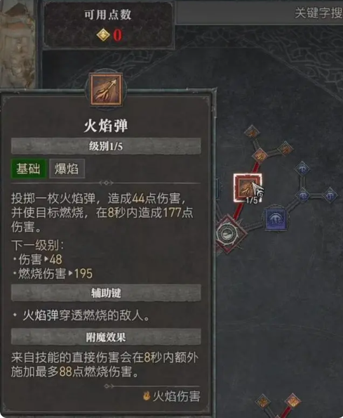 分支技能点出“强化火焰弹”,提供穿透效果。