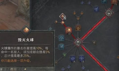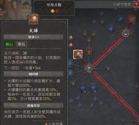 分支技能点出“毁灭火球”,提升暴击伤害。