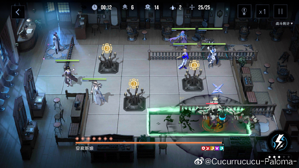 阵容四:利用场上的灯和丽莎的减速技能让boss在场上绕