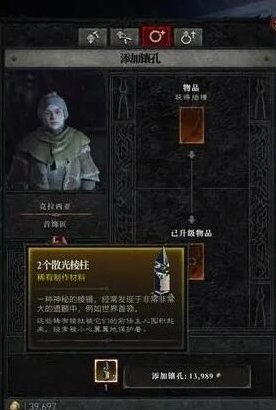 你可以在首饰匠处使用散光棱柱添加镶孔。 散光棱柱可以从世界首领、哥布林等处掉落,你只需要 1 个就可以为一件装备添加一个镶孔 ,但不是每种装备都可以添加镶孔。